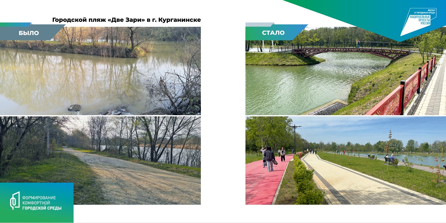 Один из первых реализованных проектов – благоустройство дворовой территории в 68 квартале города Курганинска. В этом году принимаем участие в нацпроекте «Инфраструктура для жизни» федеральном проекте «Формирование комфортной городской среды», в рамках которых благоустраиваем парк Победы в Курганинске.