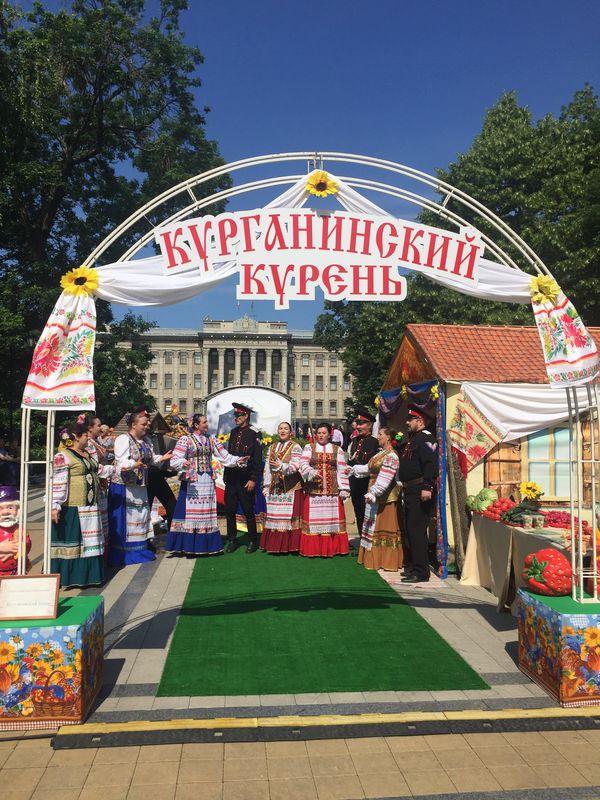 Подворье муниципального образования Курганинский район находилось напротив памятника Екатерине, мастера прикладного творчества привезли самые лучшие свои работы - Ирина Ковез, Инна Курносова, Татьяна Лиманская, Татьяна Соловьёва, Анна Харланова, Кристина Модина (город Курганинск, станица Родниковская, посёлок Южный, посёлок Лучезарный). Владельцы личных подсобных хозяйств, индивидуальные предприниматели привезли на ярмарку свою продукцию. На выставке красовалась аппетитная клубника, томаты, огурцы, свекла, редис, капуста. В исполнении народного ансамбля казачьей песни "Зори над Лабой" Курганинского культурно-досугового центра звучали песни Кубани.