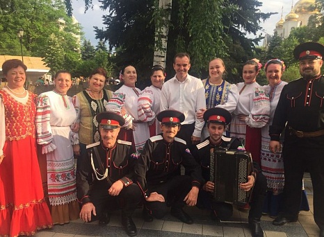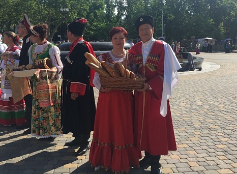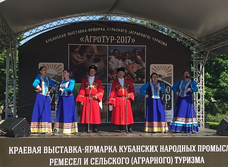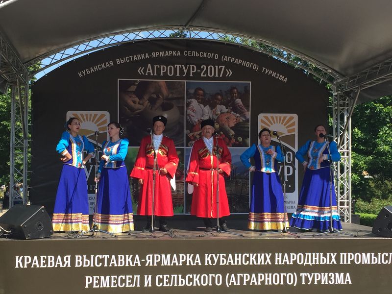 У фонтана на площади перед зданием ЗСК состоялось торжественное открытие выставки-ярмарки кубанских народных промыслов, ремесел и сельского аграрного туризма "АгроТУР-2017". На сцене в течение всего мероприятия выступали лучшие творческие коллективы муниципальных образований. Народный ансамбль казачьей песни "Родные напевы" Темиргоевского культурно-досугового центра также выступал со своей программой. Зрители тепло приветствовали наших артистов, танцевали под веселые кубанские песни.