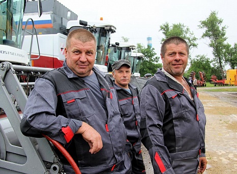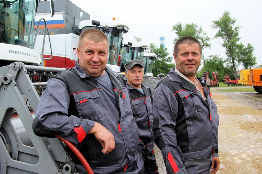 В СПК "Колхоз "Новоалексеевский", несмотря на начавшийся дождь, участников смотра вместе с руководителями приветствовали механизаторы. Это хозяйство на протяжении нескольких лет первым ставит технику на линейку готовности. Здесь делают ставку на отечественные, проверенные временем и не столь дорогие в обслуживании машины. Парк уборочной техники представлен комбайнами "Добрыня", переоборудованными из комбайнов "Дон-1500". Особенностью хозяйства является и то, что в страду за каждым комбайном закрепляется грузовой транспорт. По мнению руководителя СПК "Колхоз "Новоалексеевский" Владимира Янке, такая схема работы не дает сбоев, что позволяет эффективно и в срок убирать урожай.