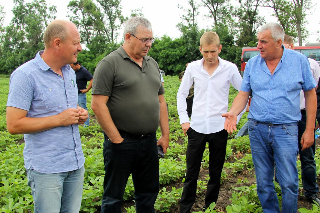 Следующим по пути следования было крестьянско-фермерское хозяйство "Сергиенко", не первый год экспериментирующее с внесением в качестве удобрения забытой землепользователями карбомидно-аммиачной смеси. Оптимизируя перевозку урожая с поля на ток, хозяйство доработало кузовы сельскохозяйственных "КамАЗов". Теперь в них вмещаются два бункера комбайна, что не могло не заинтересовать коллег по аграрному делу. Новшеством в хозяйстве стало сокращение посевных площадей кукурузы. Из-за низкой цены на эту культуру было принято решение переориентироваться на сою.