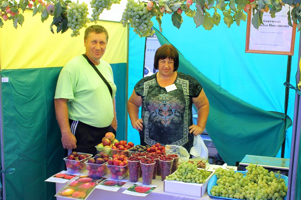 в выставочных павильонах ЗАО "Курганинский мясоптицекомбинат", СПК "Колхоз "Новоалексеевский" и ООО "Мясной партнер". Подсолнечное масло, муку, уксус представил на ярмарке глава крестьянско-фермерского хозяйства Валерий Эндерс, а богатый выбор свежих овощей - владельцы личных подсобных хозяйств Владимир Храпко, Евгений Уваров, Михаил Сафонов, Александр Дмитриев, Евгений Манской, Николай Кулаков, Светлана Лобкова. Ароматным медом угощали посетителей Наталья Дуля и Алла Гурлова. Свежую рыбу можно было приобрести на ярмарке у ООО "Поли" и ООО "Рыбколхоз "Синюхинский". Предлагались к реализации и различные саженцы. Например, Наталья Квитченко привезла на ярмарку саженцы винограда. А индивидуальные предприниматели Олег Гришков и Олег Канунников предлагали посетителям выставки-ярмарки саженцы декоративных кустарников и хвойных деревьев. Рассадой клубники готова была поделиться с покупателями индивидуальный предприниматель Екатерина Швецова. Живую домашнюю птицу предлагали покупателям на площадке ЗАО "Птицефабрика "Белореченская", а также владельцы ЛПХ Евгений Зайцев и Любовь Логачева, а битую птицу можно было приобрести у Оксаны Сутягиной и Любови Кравченко.